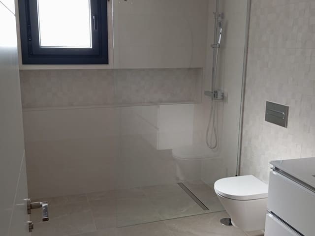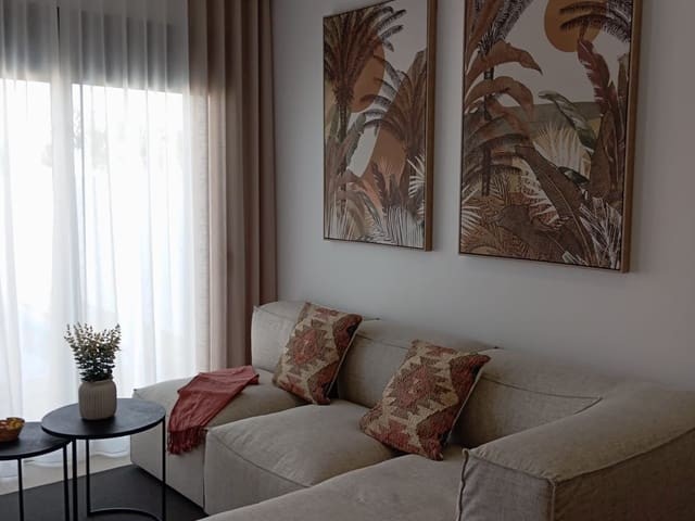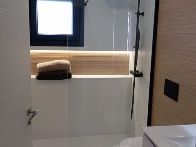 Only 2 left starting price for this luxury villa complete with solarium, fully fitted kitchen. Residencial Olivo Del Mar I is a luxury complex of 10 villas with private swimming pool as well as covered garage area for each property. These villas are duplex style with terraced areas on the ground, first and second floors with different orientations, allowing you to enjoy all hours of sunshine every day of the year. Each property has 3 bedrooms and 2 bathrooms. The properties have been designed on two levels as a duplex style and an open planned concept, consisting of a fully-fitted kitchen and lounge-dining room. The complex is located in Los Alcázares (Murcia), at 400 metres from the sandy beaches and 30 minutes driving to Murcia Airport. It is also surrounded by all services, sports facilities and close to several golf courses such as Roda Golf, La Serena Golf, Mar Menor Golf and many others. The properties will meet the highest standards and will be equipped with: Private swimming pool with outdoor shower. Summer kitchen in solarium. Kitchen equipped with all appliances: fridge, ceramic hob, raised oven, built-in microwave, extractor fan, and integrated dishwasher. Lined wardrobes with drawers. Bathrooms with toilet, vanity unit, mirror with light and shower screens. Pre-installation for air conditioning. Covered garage area.