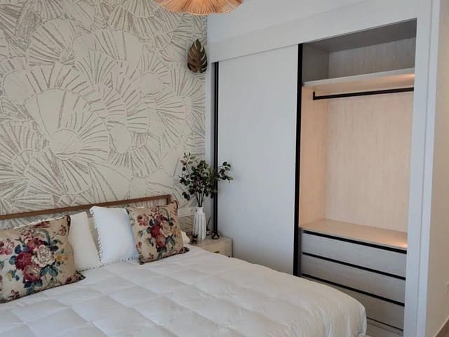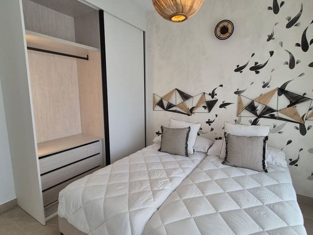 Prices start at 294,000 euros and range up to 460,000 euros for the penthouse. Whitegoods: dishwasher, oven, microwave, ceramic hob and refrigerator. Complete bathrooms: lights, mirror with LED light, screens and bathroom furniture. Exterior lighting. Discover the Residencial Moma II in Benijófar, an architectural gem in the heart of the Vega Baja del Segura. This exclusive project, whose construction is scheduled for 2024/2025, offers an exceptional quality of life in a privileged location. The homes at Residencial Moma II feature two, three, or four bedrooms, complemented by spacious terraces starting from 20 m². Residents will be able to enjoy a communal swimming pool, the option of a garage, and a modern American kitchen. The southwest orientation ensures excellent natural lighting. Luxury penthouse with private pool, two bedrooms and two bathrooms, of which one bathroom is en suite. The luxurious kitchen is equipped with all appliances including a dishwasher. Large balcony of almost 23m2 and as an eye-catcher, on top of your apartment you have a private roof terrace/solarium of 62m2 with outdoor kitchen and a private swimming pool with all the privacy you could wish for! You can take the communal elevator or your internal stairs to your roof terrace, where you have a fantastic view of the surrounding meadow. Around the corner you will find the first nice Spanish bars, supermarket, bakery, etc. You can leave your car in your own private parking space (optional) under the complex. Located just 10 km from the beach, 40 km from the airport, and a mere 200 meters from all services, Residencial Moma II is ideal for those seeking comfort and proximity to various points of interest. Additionally, for golf enthusiasts, there are courses just 4 km away. The facilities at Residencial Moma II include an elevator, video intercom, appliances included, communal green area, pre-installation of air conditioning, and security door, offering everything necessary for a comfortable and safe life. Experience the luxury and comfort you deserve at Residencial Moma II. Spacious and luxurious two-bedroom apartment on the ground floor, which is actually the first floor. That's because we build the apartments on top of the private parking garage of the complex. Because of this and the height difference with the road at the front and rear, the ground floor apartments are higher than street level. Would you like to know exactly how that works Come visit the show house without obligation and we will tell you all about it and show you. We will also show you the two luxurious bathrooms without obligation, one of which is en suite - The apartment has a large balcony of almost 25m2! This means there is enough space for a large dining table and, for example, a lounge set. The apartment has finished fitted wardrobes with drawers to store all your clothes. The luxurious kitchen is equipped with energy-efficient appliances from an A-brand and of course the dishwasher is included.