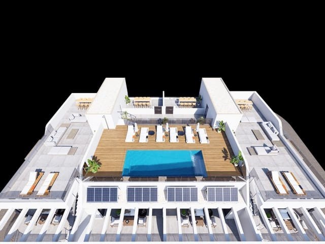 Benisol apartments combine contemporary design, high quality and an unbeatable location. This exclusive development is designed for those looking for a safe investment in an area with great projection and, at the same time, enjoy an exceptional lifestyle. Benijófar has established itself as one of the most sought-after destinations on the southern Costa Blanca, attracting both residents and international investors. Its range of services, its proximity to the beaches of Guardamar and prestigious golf courses, as well as its proximity to Alicante Airport (just 20 minutes away), make it a strategic choice. In addition, its vibrant international community guarantees a welcoming and cosmopolitan environment throughout the year. The Benisol apartments have been designed to offer maximum comfort, with modern and functional spaces. They have a spacious living-dining room, a fully equipped open-concept kitchen and exclusive details such as an innovative rotating TV cabinet and an elegant window seat to enjoy the views. Each apartment has three bedrooms and two bathrooms, finished with top quality materials, as well as access to a spectacular communal area on the roof terrace, ideal for relaxing and enjoying the surroundings. All the prices include: Electric shutters in bedrooms, electric hob and extractor fan in the kitchen, full finished bathrooms, and inside and outside illumination. Included: Community Pool and common areas.
