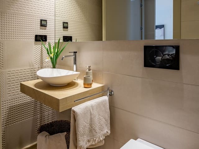 Prices Start from: Ground Floor 2 Bedroom apartment POA Ground Floor 3 Bedroom apartment POA Top Floor 2 Bedroom apartment from POA Located in La Finca Resort, an exclusive and privileged place in Costa Blanca South, we find the Zante apartments in our new Residential Mar Egeo. These bright apartments of 2 or 3 bedrooms are distributed in three blocks of two floors each. The first floor model has a private garden and the penthouses have a large solarium, both with access from the living room. Its magnificent modern style kitchen with top quality materials is designed to meet all your needs in terms of design and functionality. Its open bar gives way to the rest of the house creating a spacious and bright environment to receive family and friends. Its bedrooms include closets to maximize storage space and the bathrooms are fully equipped with sink, mirror, full shower screen and underfloor heating for comfort. It also has air conditioning throughout the house. Outside there is a communal garden with a wide variety of plants, hammock area and a large swimming pool to enjoy the day in the purest Mediterranean style. This model is available with parking and storage room. Undoubtedly, Zante apartments are the perfect choice for those seeking a quiet and exclusive lifestyle. Installation of A/C system by conducts Electric shutters Private parking & storage room in underground parking from +6.500,00 + VAT (Optional) Communal pool.