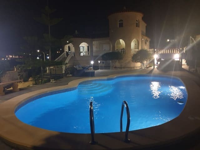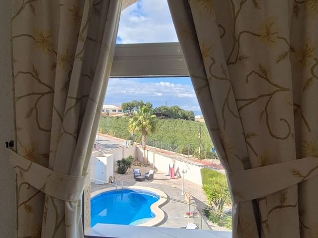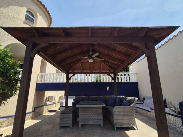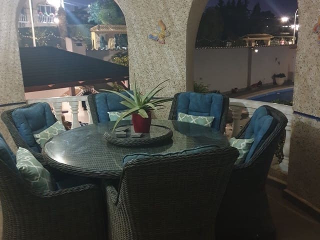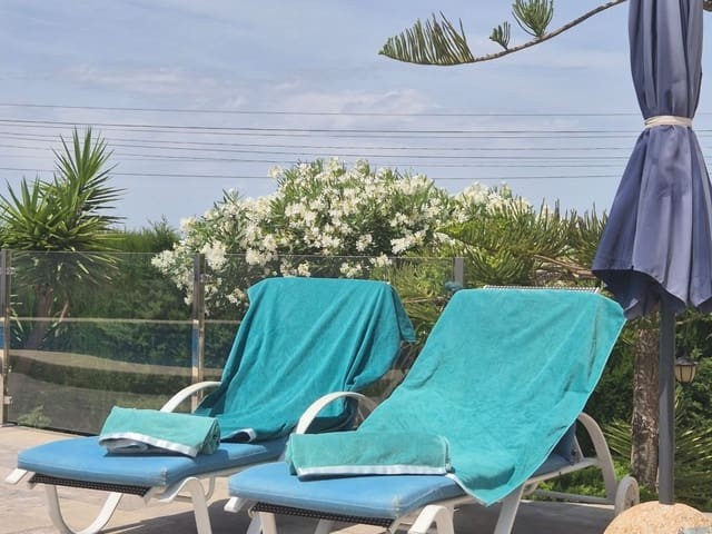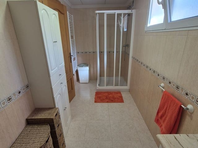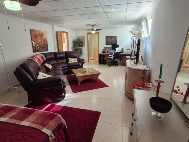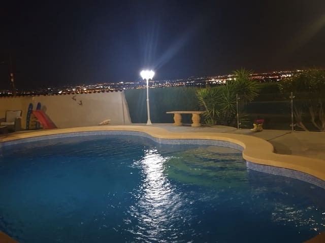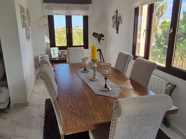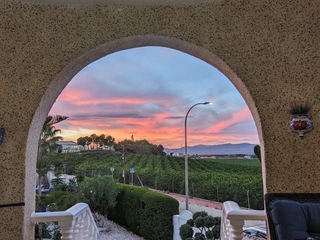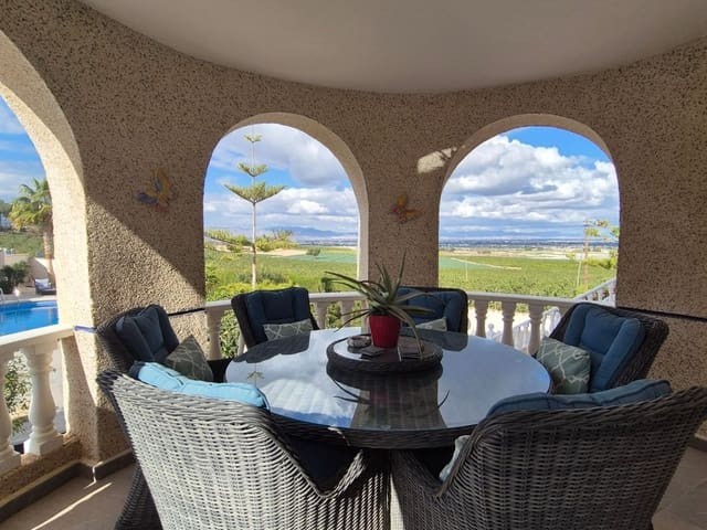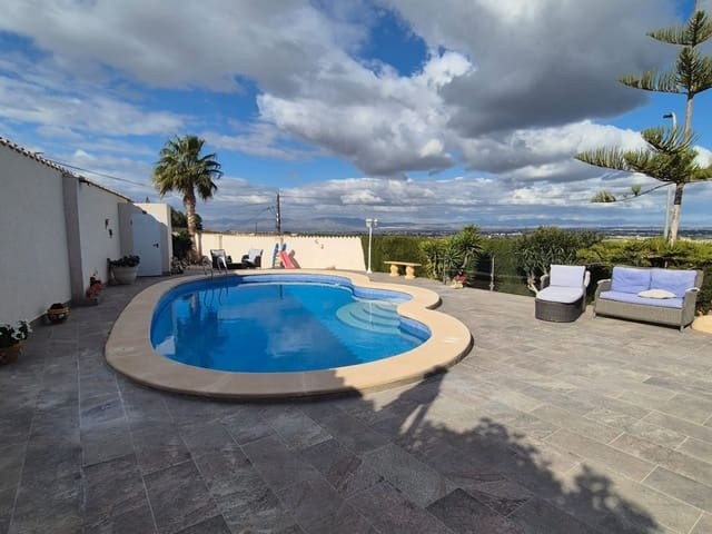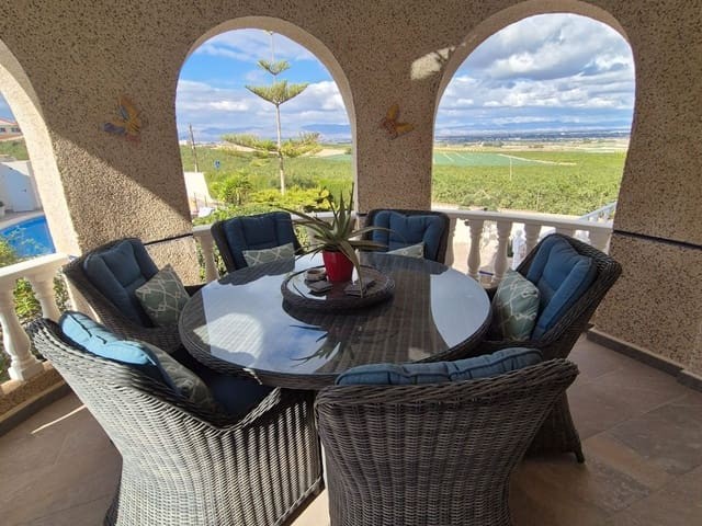 Discover this charming, exceptional well-loved 5 bedroom family home. This spacious property for sale is between the popular towns of Algorfa and Almoradi. The property occupies a corner aspect and boasts an overall build size of over 375m2 with spectacular views from all angles of this property. The main accommodation is set out over the first floor where you will find a spacious lounge-diner which leads out onto a sun terrace. There is a larger than average independent kitchen. There are 2 guest bedrooms (all double) 1 is with en-suite which is served by a good-size bathroom. The master bedroom is situated on the top floor and boasts plenty of wardrobe space (walk in) along with its own large en-suite bathroom. The house has two separate entrances, with parking space for one car, sheltered by a pergola, which leads to an internal garage. Inside you have your games room with a full size pool table and table tennis table, there is also plenty of storage space, along with your very own self contained living and sleeping accommodation. For the self contained accommodation you have your own front door, leading into your open plan kitchen, which has access to the various rooms. This fully functional accommodation which has an American style kitchen, open plan, 1 separate double size bedroom, separate bathroom, living area and bedroom. This offers guests to live in your home while maintaining a degree of separation. This area can also be used for short/long-term guests of any kind who can have a comfortable separate space to live in that maintains harmony within the household. Leading out to the rear you have a wonderful north west facing garden which offers plenty of space for sunbathing, outdoor dining, perfect for chilling out during the day and evenings. You have the added advantage of being able to cool off in your own private swimming pool! The pool is surrounded with non-slip tiles. The house has full central heating via oil burner, ceiling fans and air conditioning, the open plan lounge has fitted log-burning fireplace. Additional items included: Heat pump air conditioning units already fitted, Driveway electric gate, High quality mosquito curtains on some windows Curtains inside, Railing on the stairs, Outside floor completely tiled, External walls and gates, and ring doorbells Shower screens in bathrooms External shower by swimming pool Garage, with games area c/w pool table and table tennis Alarm and external cameras Very large garden with mature plants and fruit trees Off road parking and car port BBQ area with pergola Wood burner fire Oil central heating Fans in kitchen, dining room and bedrooms Various terraces Putting green