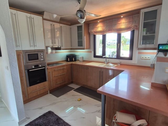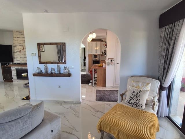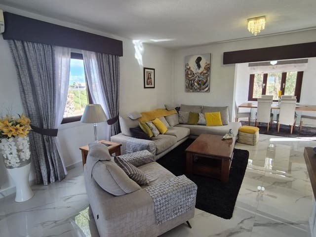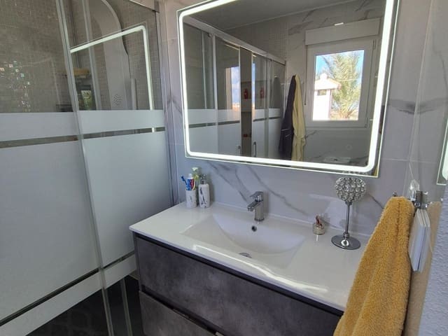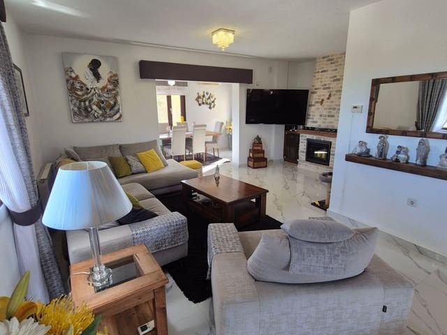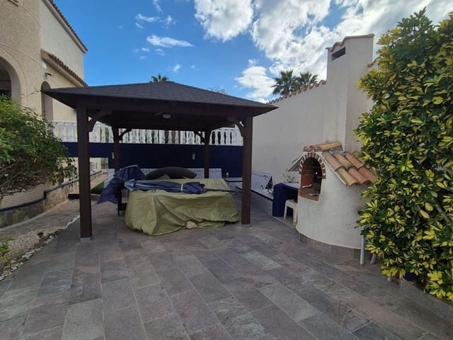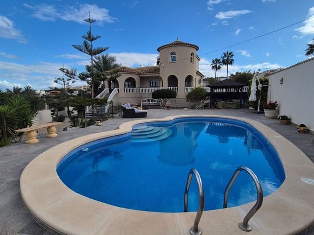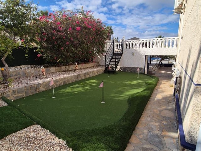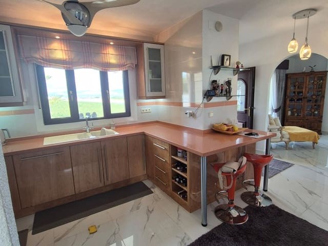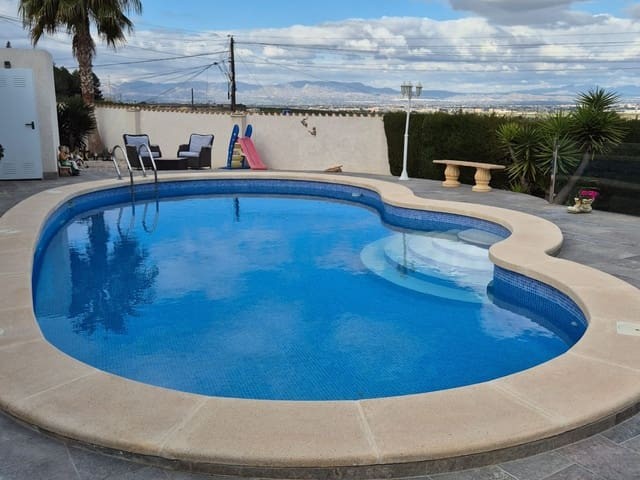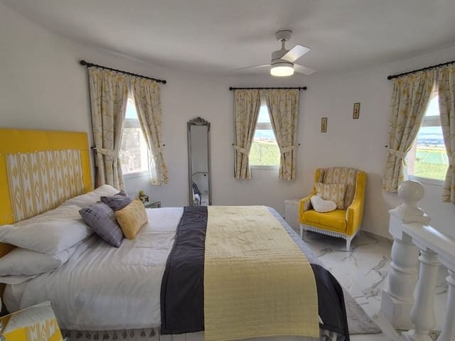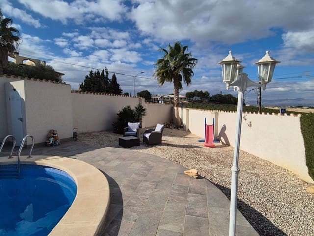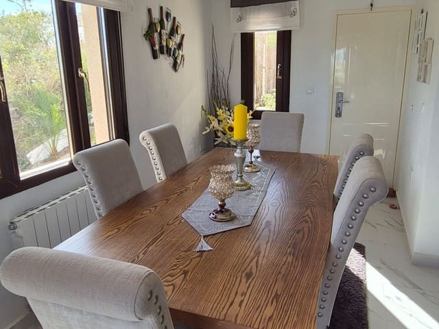 Discover this charming, exceptional well-loved 5 bedroom family home. This spacious property for sale is between the popular towns of Algorfa and Almoradi. The property occupies a corner aspect and boasts an overall build size of over 375m2 with spectacular views from all angles of this property. The main accommodation is set out over the first floor where you will find a spacious lounge-diner which leads out onto a sun terrace. There is a larger than average independent kitchen. There are 2 guest bedrooms (all double) 1 is with en-suite which is served by a good-size bathroom. The master bedroom is situated on the top floor and boasts plenty of wardrobe space (walk in) along with its own large en-suite bathroom. The house has two separate entrances, with parking space for one car, sheltered by a pergola, which leads to an internal garage. Inside you have your games room with a full size pool table and table tennis table, there is also plenty of storage space, along with your very own self contained living and sleeping accommodation. For the self contained accommodation you have your own front door, leading into your open plan kitchen, which has access to the various rooms. This fully functional accommodation which has an American style kitchen, open plan, 1 separate double size bedroom, separate bathroom, living area and bedroom. This offers guests to live in your home while maintaining a degree of separation. This area can also be used for short/long-term guests of any kind who can have a comfortable separate space to live in that maintains harmony within the household. Leading out to the rear you have a wonderful north west facing garden which offers plenty of space for sunbathing, outdoor dining, perfect for chilling out during the day and evenings. You have the added advantage of being able to cool off in your own private swimming pool! The pool is surrounded with non-slip tiles. The house has full central heating via oil burner, ceiling fans and air conditioning, the open plan lounge has fitted log-burning fireplace. Additional items included: Heat pump air conditioning units already fitted, Driveway electric gate, High quality mosquito curtains on some windows Curtains inside, Railing on the stairs, Outside floor completely tiled, External walls and gates, and ring doorbells Shower screens in bathrooms External shower by swimming pool Garage, with games area c/w pool table and table tennis Alarm and external cameras Very large garden with mature plants and fruit trees Off road parking and car port BBQ area with pergola Wood burner fire Oil central heating Fans in kitchen, dining room and bedrooms Various terraces Putting green