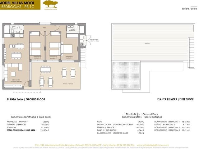 Enjoy a fabulous villa a few meters from one of the best golf courses in the area and less than 15 minutes from the beach. Located in an urbanization that puts at your disposal all the services you need; supermarket, restaurants, pharmacy you will enjoy a privileged environment every day, with large green areas and surrounded by nature. Choose the villa that best suits your lifestyle with an independent plot of up to 299m² and with 3 or 4 bedrooms (at additional cost). Start enjoying your new home that you are looking for with first quality materials and in which you will have a private pool to enjoy to the maximum. These properties also come with white goods fitted. Options available at additional costs: 4 bedrooms/3 bathrooms Solariums Prices are dependent on orientation and size. Vistabella has key connections to other parts of the south east of Spain. Torrevieja and Orihuela are two cities that have good links with the area and Alicante Airport just 30 minutes drive. If you are a keen cyclist then this is a perfect location to cycle to many local areas, along with many activities you can enjoy, from shopping and sports to dining out and visiting museums. Nearby Vistabella is a large lake: the Embalse de la Pedrera. This stretches for many kilometres from the nearby towns of Hurchillo and Bigastro to Torremendo in the south. The lake makes for spectacular viewing and during certain times of the year it even dries up a little. With the lake being so large it makes this area an ideal place for long bicycle journeys, setting off from the likes of Vistabella. It is also a good place for walks and keen photographers. On the urbanization is Vistabella Golf Resort. The course was designed by the former European and World Cup champion, Manuel Pinero. The course incorporates much of the challenges he faced when he was professional, including much of his experience from competitions such as the Ryder Cup, Europeans Tours, the World Cup and the Dunhill Golf Cup.