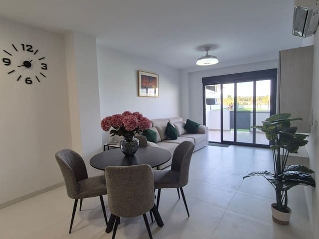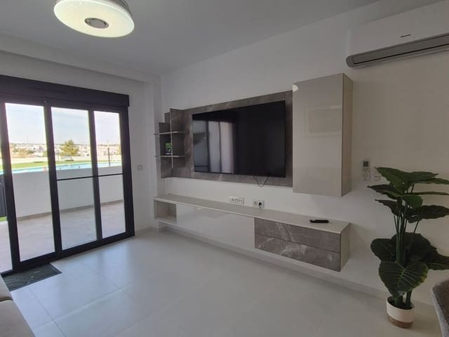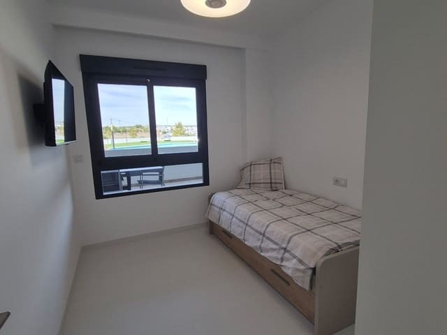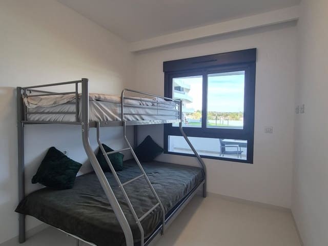 Key ready, available to walk in and relax Residential of 165 homes this 3 bedroom apartment. It has parking underneath. Completely closed residential with community pools for adults and children, green areas, playground for children and area for adults with bio-healthy circuit, it is located on the Costa Blanca in San Miguel de Salinas near Campos Golf, beach and shopping centers. Apartment is completely furnished with all these extras, for only 284,900 euros Fully furnished kitchen with induction hob, extractor, fridge freezer and dishwasher Washing machine fitted outside Porcelain floors. Compact electric blinds. Mosquito nets on all doors and windows White laminated wardrobes with mezzanine in bedrooms. Air conditioning for split in living room and bedroom. Fans in living room and bedrooms Additional storage room in the apartment, can be used for storing electric e-bikes Televisions in living room and bedrooms.